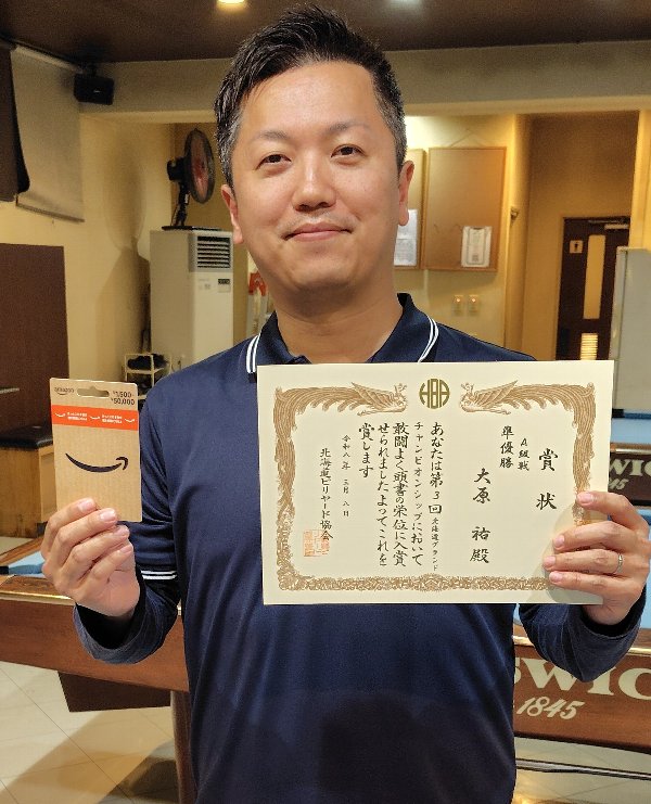 準優勝 大原祐選手(HPBA/VIVAPOOL)